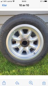 4 st Minilite fälgar med däck. Morgan original 205/60 R15. Har gått cirka 200 mil!